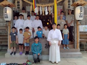 森の手入れ、海の手入れの活動、植物の生態などのおはなしを聞き、禊、カレーライスを食べた後、伊藤宮司に境内をご案内頂いた。